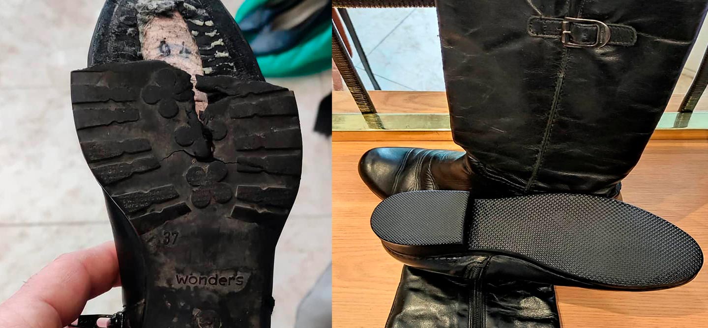 Entre nuestros trabajos de reparación destacamos, colocación de Tapas, Filis, Resolados, Suelas de cuero, cambiamos Tacones, Punteras, cremalleras, achicamos o ensanchamos las cañas de las botas.